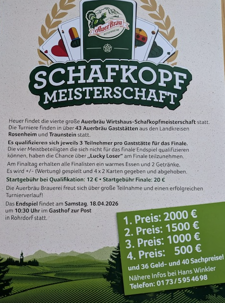 Liste - aller Termine - Schafkopfrennen in Bayern: