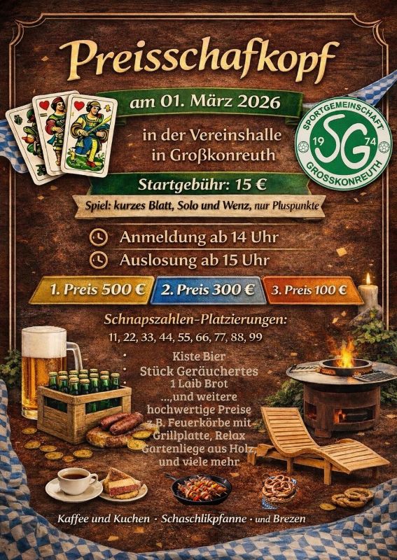 Anlässlich des 50-jährigen Gründungsjubiläums richtet der DJK-SV Oberwiesenacker ein großes Schafkopfrennen aus.